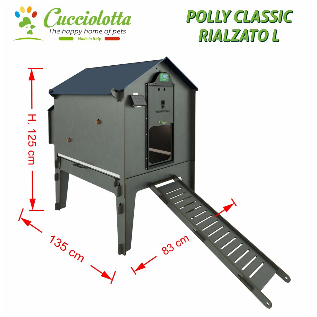 Pollaio per 6 galline con cassetto removibile 2 posatoi 2 nidi esterni POLLY CLASSIC Rialzato L GREY