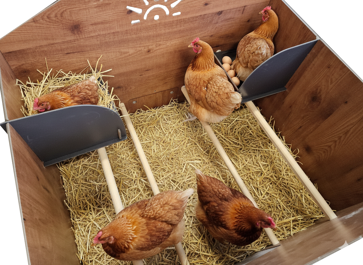 Pollaio per 6 galline con cassetto removibile 2 posatoi 2 nidi esterni POLLY CLASSIC Rialzato L