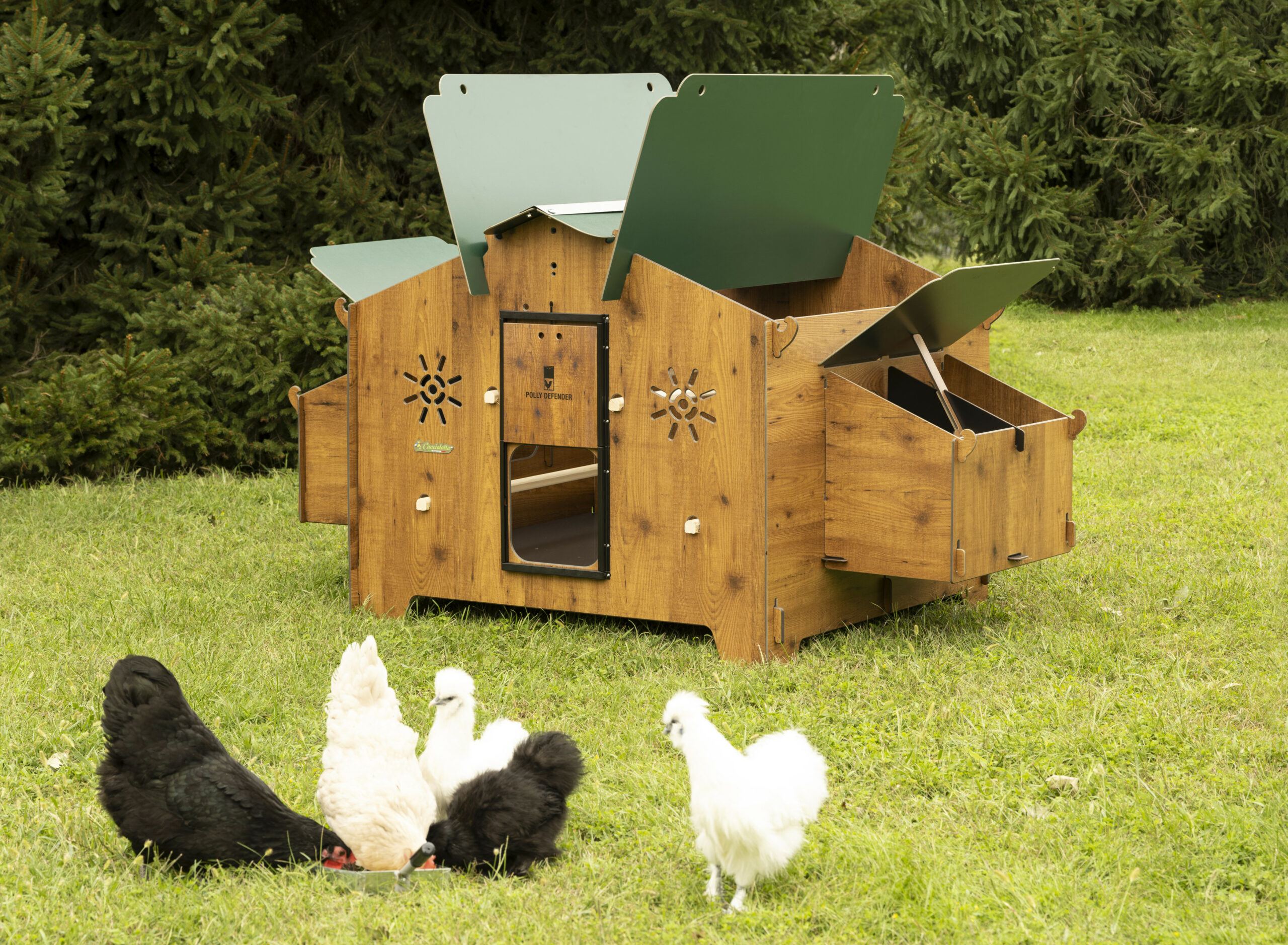 * Pollaio fornito di porta manuale antipredatore modello Polly Defender