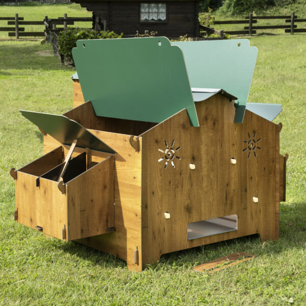 * Sulla parte posteriore del pollaio c’è un’apertura che facilita le operazioni di pulizia del fondo