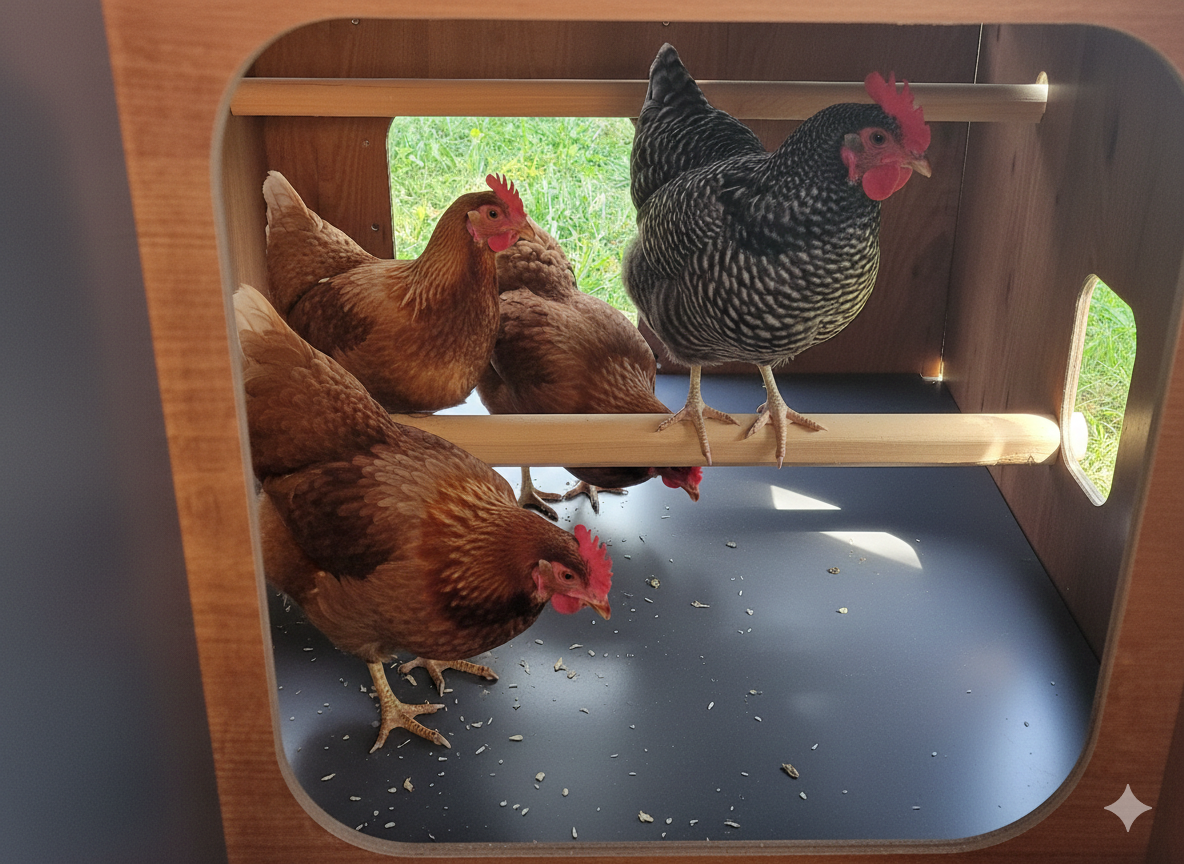- pollaio confortevole per : Razze giganti fino a 6 galline , razze medie fino a 8 galline , razze leggere o piccole fino a 10 galline ornamentali